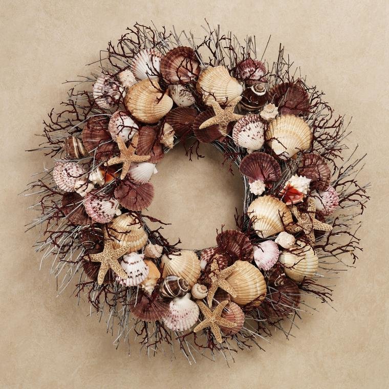 - декор растительного происхождения - мох, солома, травы (сено), тростник, семена и коробочки, листья, цветы, зёрна, орехи и их скорлупа. Деревья, кустарники и их части - ветви, листья, хвоя, шишки, серёжки, жёлуди, корни, пробка