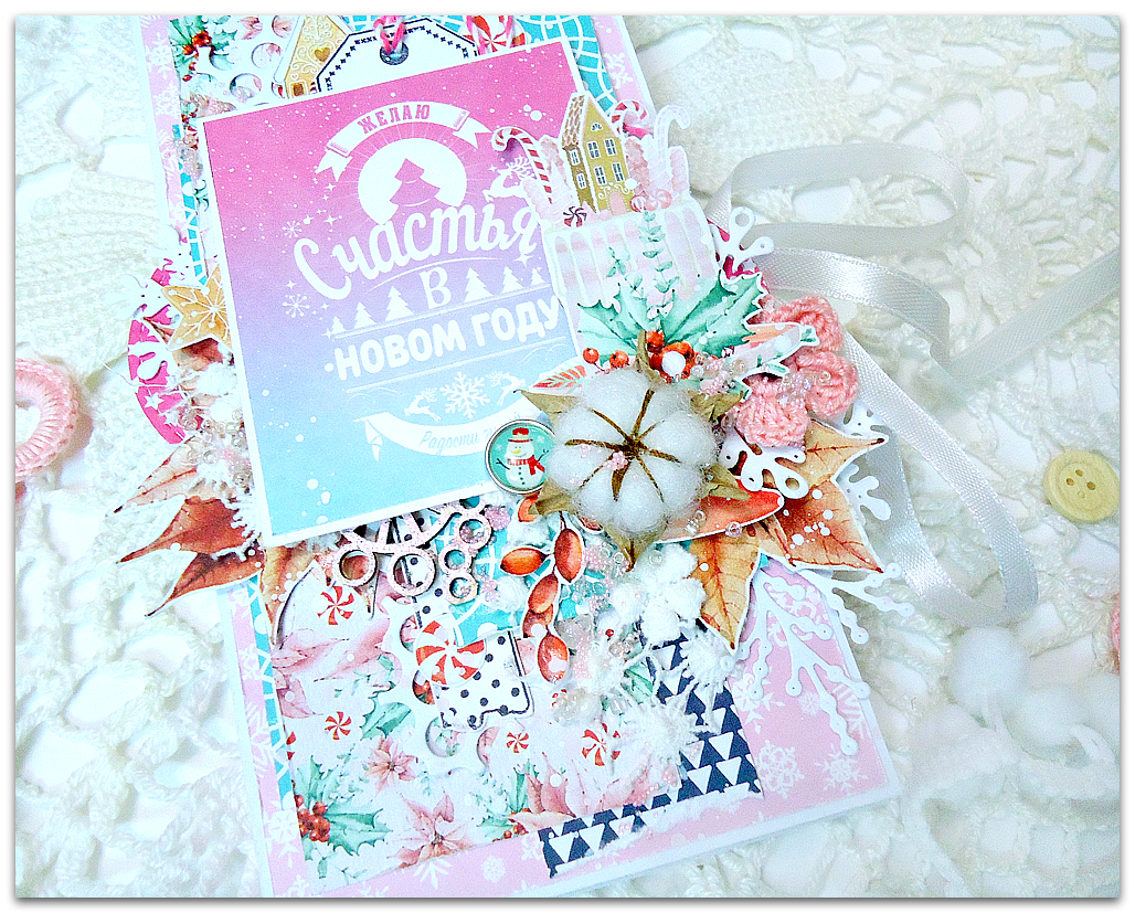 Из ОЭ выбрала - тег, снежинки - принт на бумаге и вырубка, розовый вязаный цветок,
